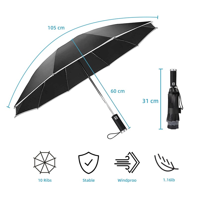 - Equipped with flashlight: the umbrella is characterized by the presence of a convenient flashlight integrated into the handle and is ideal for illuminating your way on the darkest and rainiest days. The easy to activate flashlight adds an extra level of functionality to the umbrella making it an essential accessory for anyone seeking comfort at all times.