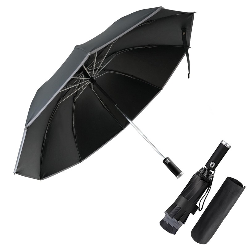 Pioggistar Windproof Umbrella, Pocket Umbrella for Men and Women, Inverted Umbrellas, 10 Ribs, Equipped with Torch, Automatic On and Off, Compact, Diameter 105 cm, black