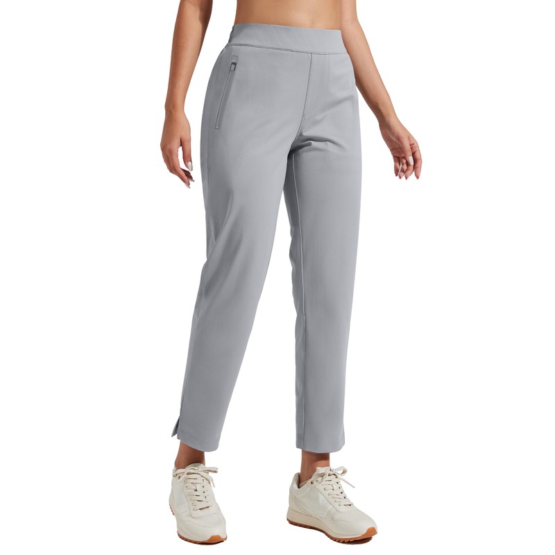 Pioneer Camp Womens Golf Pants with Zip Pockets High Waisted Stretch 7/8 Ankle Dress Work Business Casual Slacks Travel Pants Light Gray