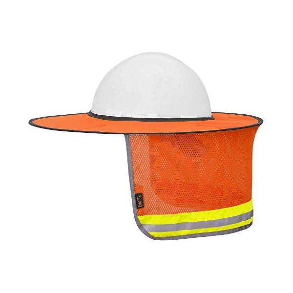 Pioneer Lightweight Hard Hat Foldable Sun Shade, Large Round Brim and Cape With Reflective Tape, Orange, Universal, V2051350-O/S