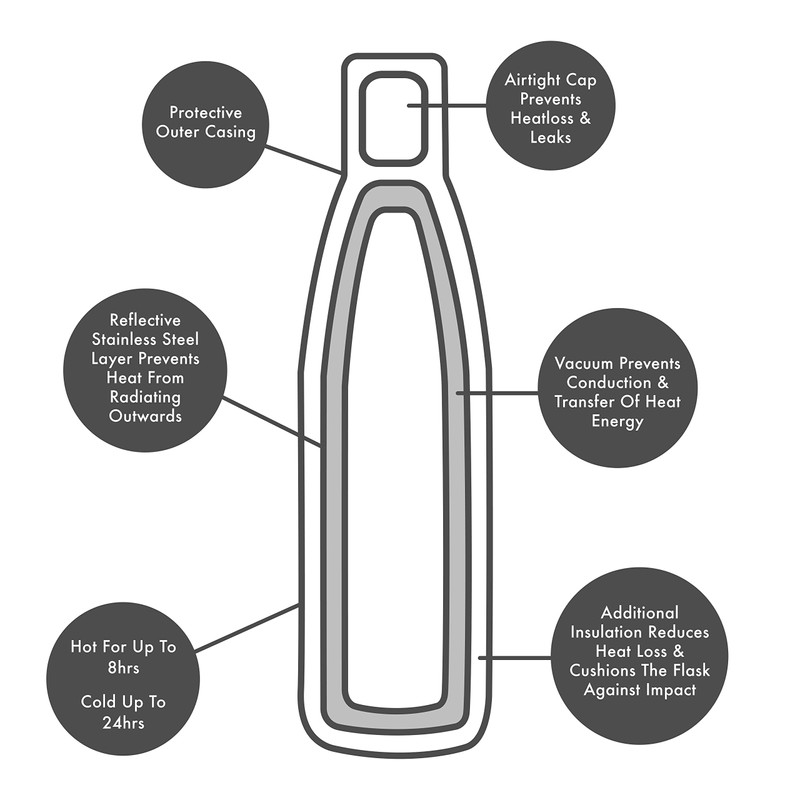 - KEEPS YOUR DRINKS ICE COLD: Double walled, vacuum insulated exterior keeps drinks cold for up to 24 hours and hot for up to 8 hours, for long lasting, refreshing flavour!