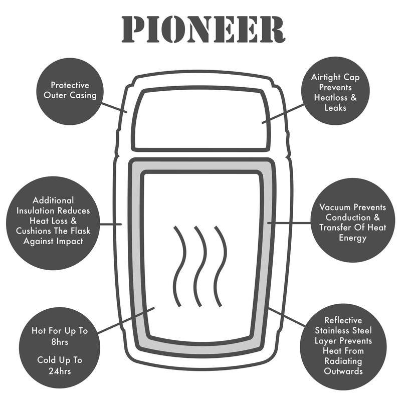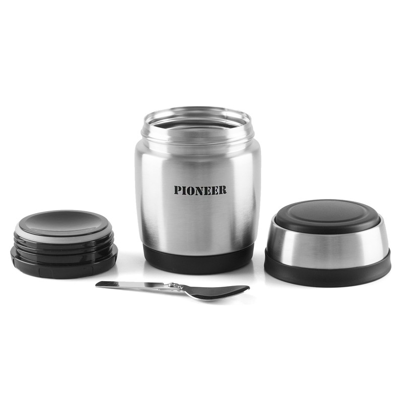 Pioneer Vacuum Insulated Leakproof Soup/Food Flask with Spoon, 8 Hours Hot 24 Hours Cold, Stainless Steel, 380 ml