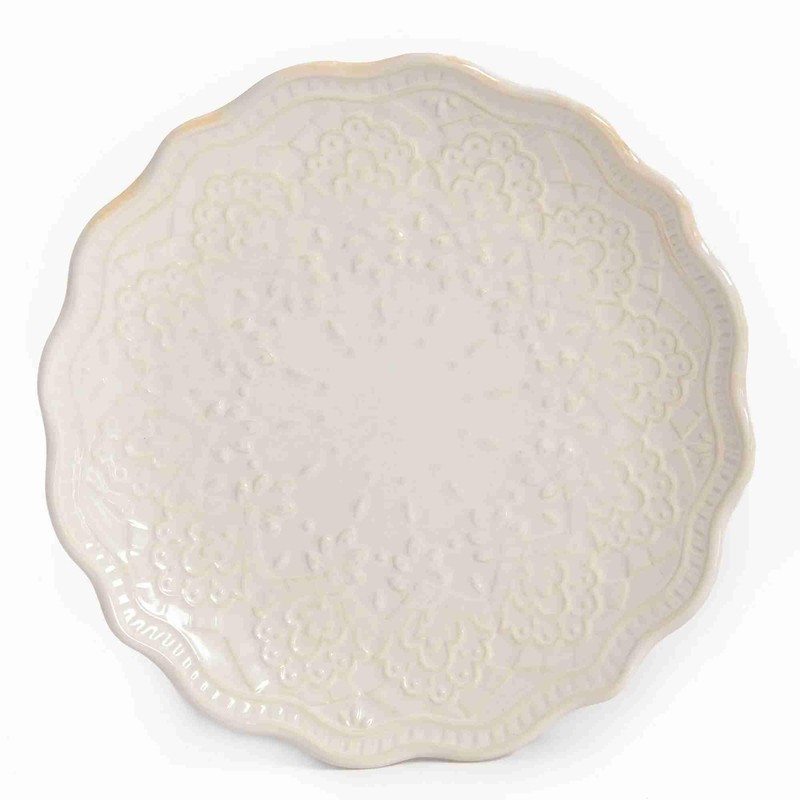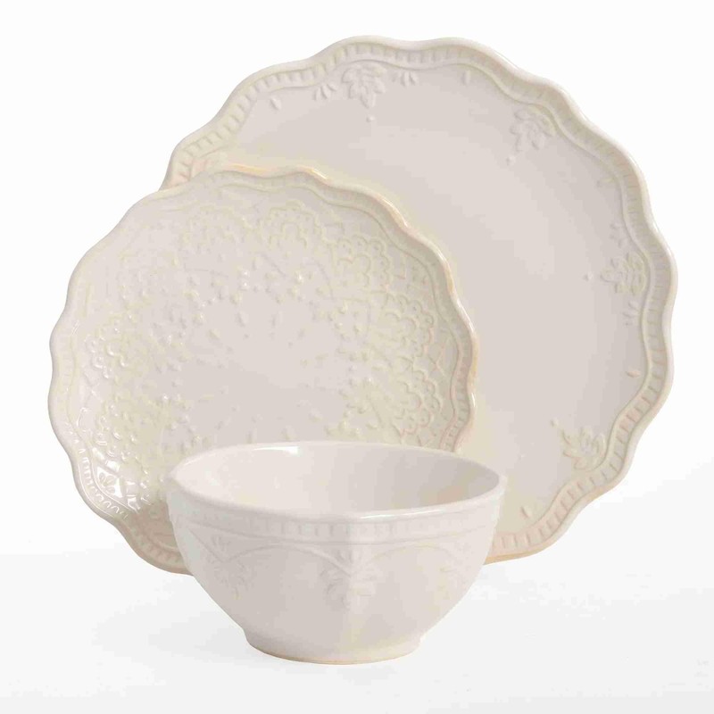 Pioneer Woman Farmhouse Lace 12-Piece Stoneware Dinnerware Set (Off-White)