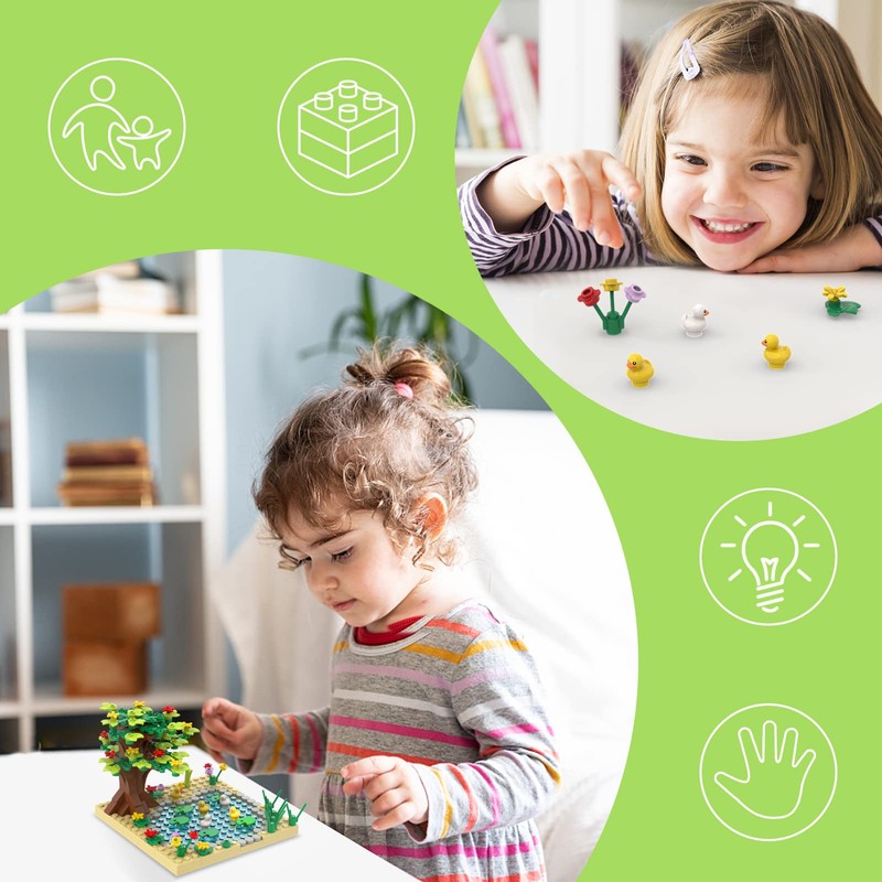 - Duck Pond Building Blocks Kit. It contains a light blue pool, a lush tree and 5 lovely ducks.