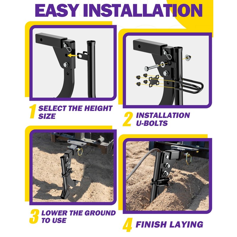 Pipe Layer Attachment Fits Hitch Mounted Ripper Shank Plow, Flexible Pipe Layer Fits Any 3-Point Ripper Hitch Lawn Subsoiler for ATV UTV Tractor, Updated Light Duty Max Dia 1.18" with 2pcs U-Bolts