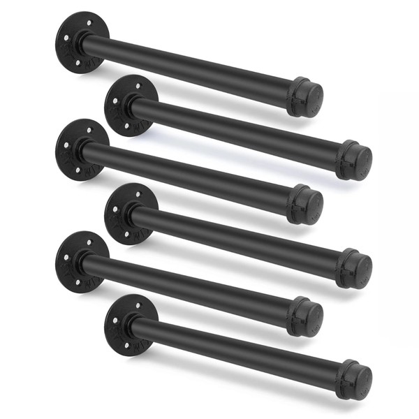 Pipe Shelf Bracket, Industrial Black Iron Pipe Shelf Brackets, Industrial Pipe Shelf Bracket 12 inch, Rustic Wall Mounted DIY Shelving Bracket 3/4", 6 Pack