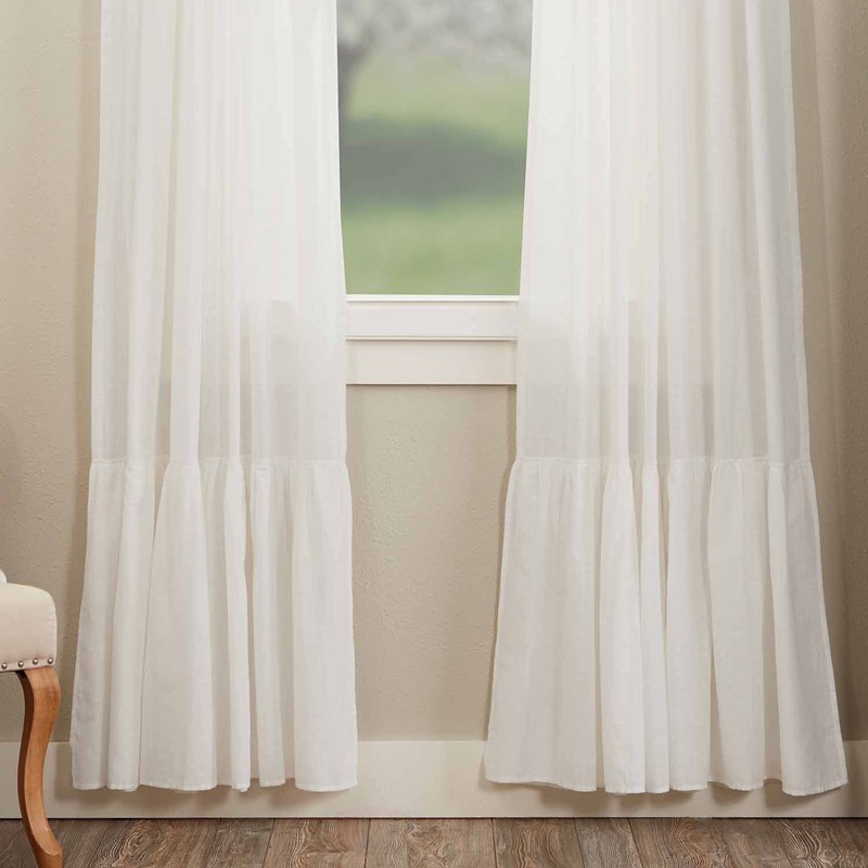 Piper Classics Elizabeth High Ruffle Panel Curtains, Set of 2, 96" Long, Antique Soft White, Soft & Draping, Semi-Sheer, Vintage Farmhouse Style
