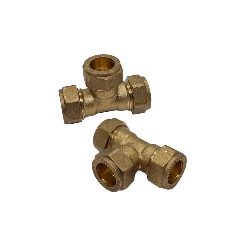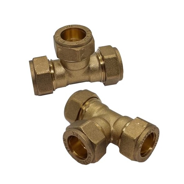 Pipestation® 15mm Brass Compression Tee Pipe Connectors for Copper Pipe - Pack of 2