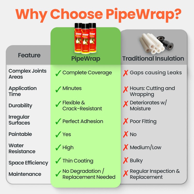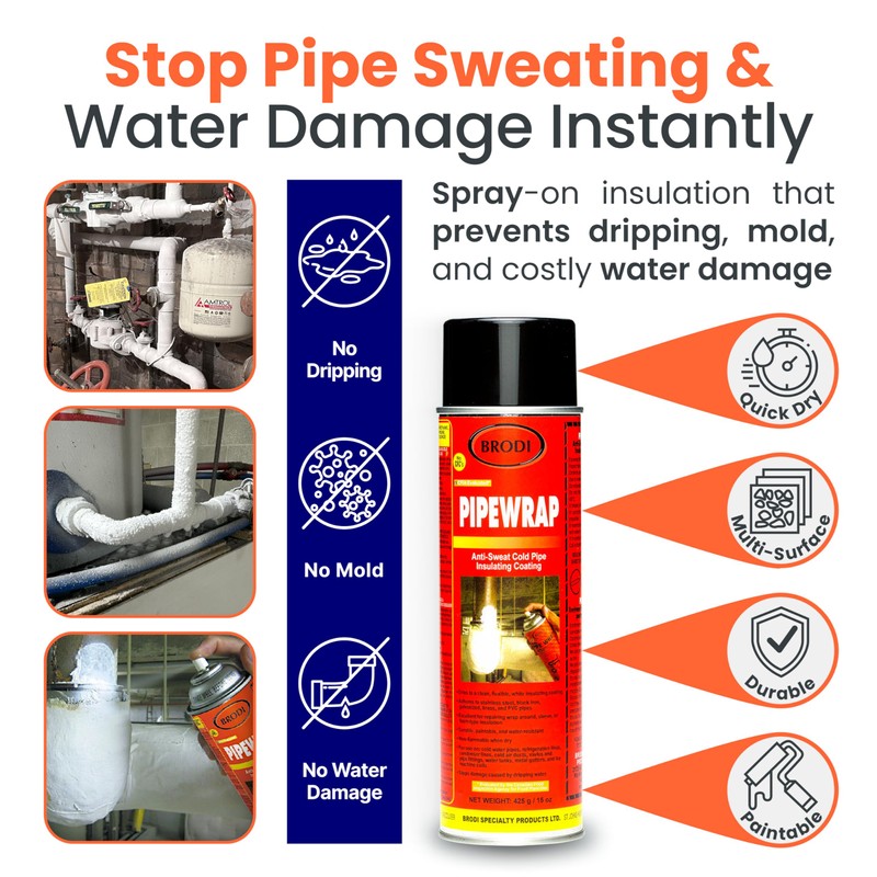 PipeWrap Pipe Insulation Spray Foam for Hard-to-Reach Areas, Fittings & Valves, Anti-Sweat Pipe Coating Spray, Stops Condensation Buildup & Prevents Dripping in Plumbing, HVAC & Refrigeration (1)