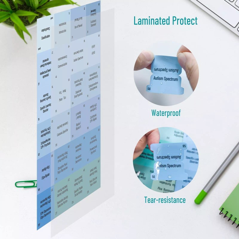 EASY APPLICATION - Each diagnosis tabs are with clear page numbers so that you could find the position quickly in the DSM-V-TR book. And they have been pre-folded in the middle to let you fold easily. What you need to do is just peel and stick.