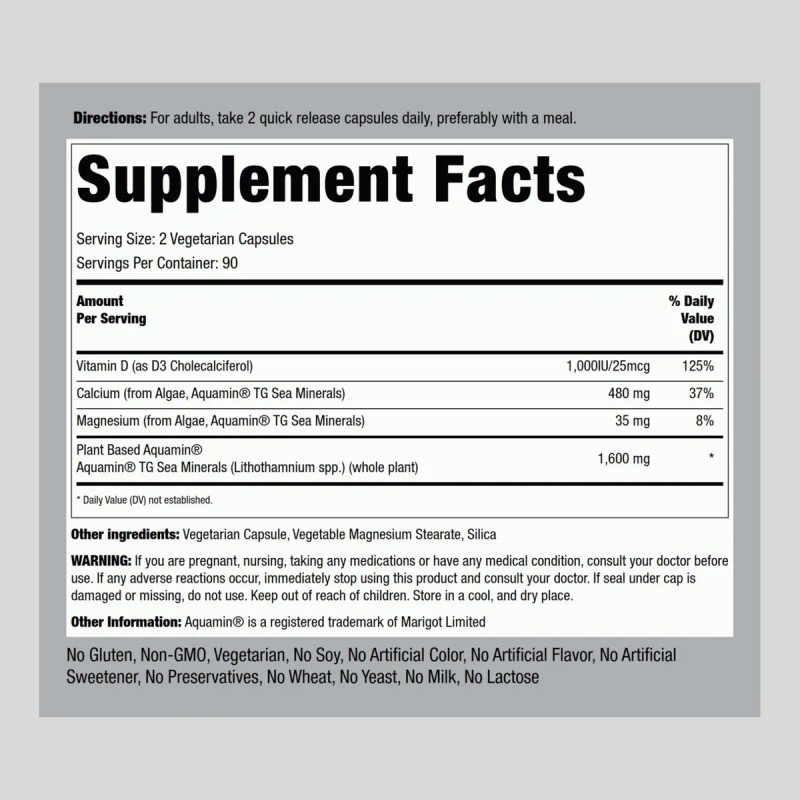Suplemento mineral de algas rojas Piping Rock con calcio vegetariano y vitamina D3.Fórmula vegetal, no contiene OGM ni gluten.Cápsulas fáciles de tomar para apoyo mineral y óseo diario.