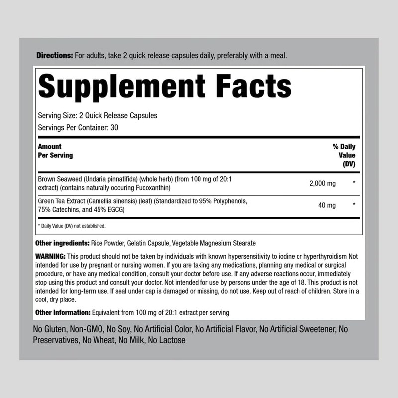 Piping Rock Brown Seaweed Capsules 2000mg | 60 Count | Fucoxanthin Extract Supplement | Non-GMO, Gluten Free