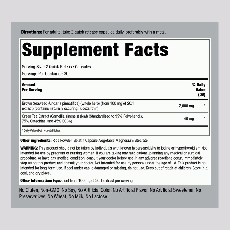 - Equivalent of 2000 mg Brown Seaweed per serving**