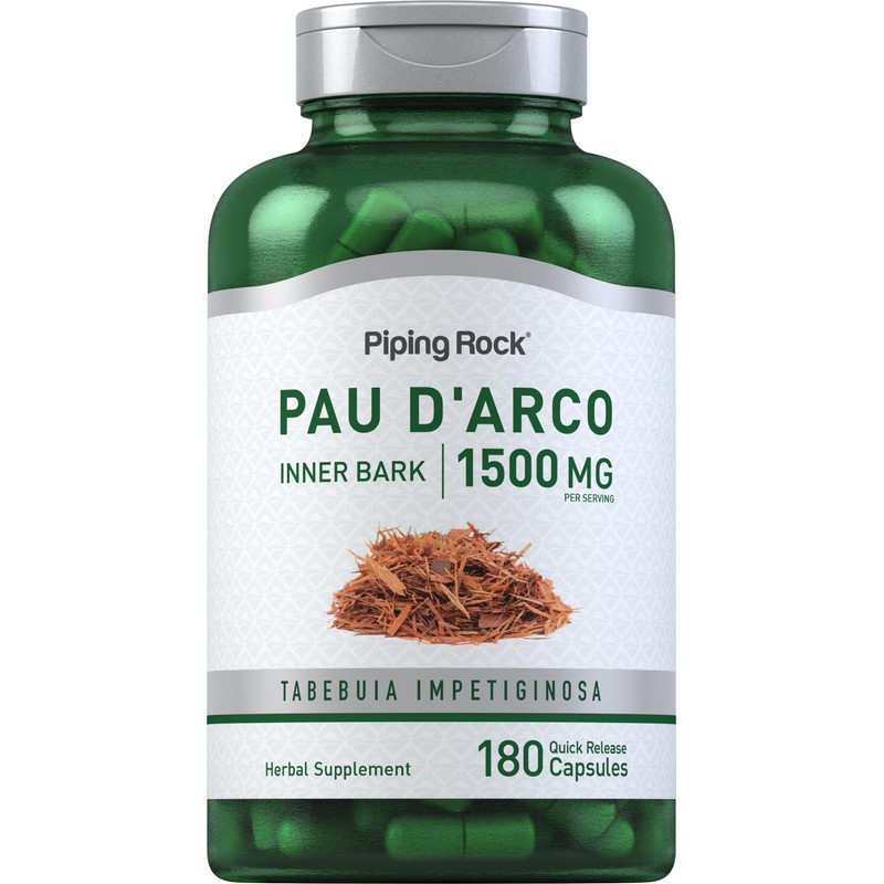 Piping Rock Piping Rock PAU D'Arco Capsules | 1500 mg | 180 Pills | Inner Bark | Herb Extract Supplement | Non-GMO, Gluten Free