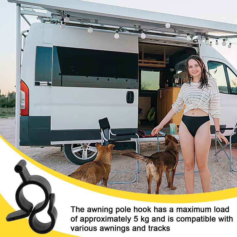 - Wide Compatibility This piping hook has a maximum load capacity of about 5 kg and is compatible with various awning and rail systems as found in RVs, caravans, camping, boats and other applications