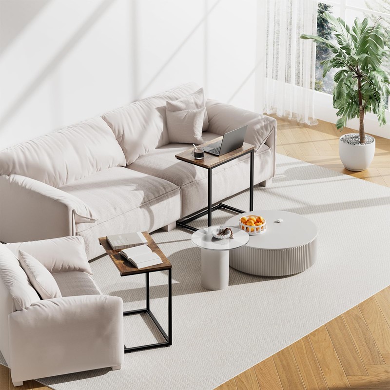 - C Table Make Items Within Reach: Easily slide the end table underneath or beside your sofa. All your needs such as coffee, refreshments, TV remote and magazines within reach. Thoughtful design of side table brings unexpected convenience and comfort to your life. C table end table lets you better enjoy your leisure time.