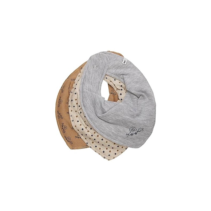 Pippi Baby Bibs Neckerchief in Economy Pack of 3 (Car Grey/Nougat + Dots), Car grey / nougat + dots