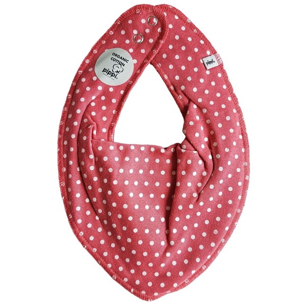 - The special cut with the refined pleats gives a great look. The bib not only sits simply on the baby's chest, but has volume and acts like a bandana knotted at the neck. However, Pippi bandanas have practical press studs for closing. Then neither an annoying knot nor a Velcro fastener presses and pinches on baby's skin.