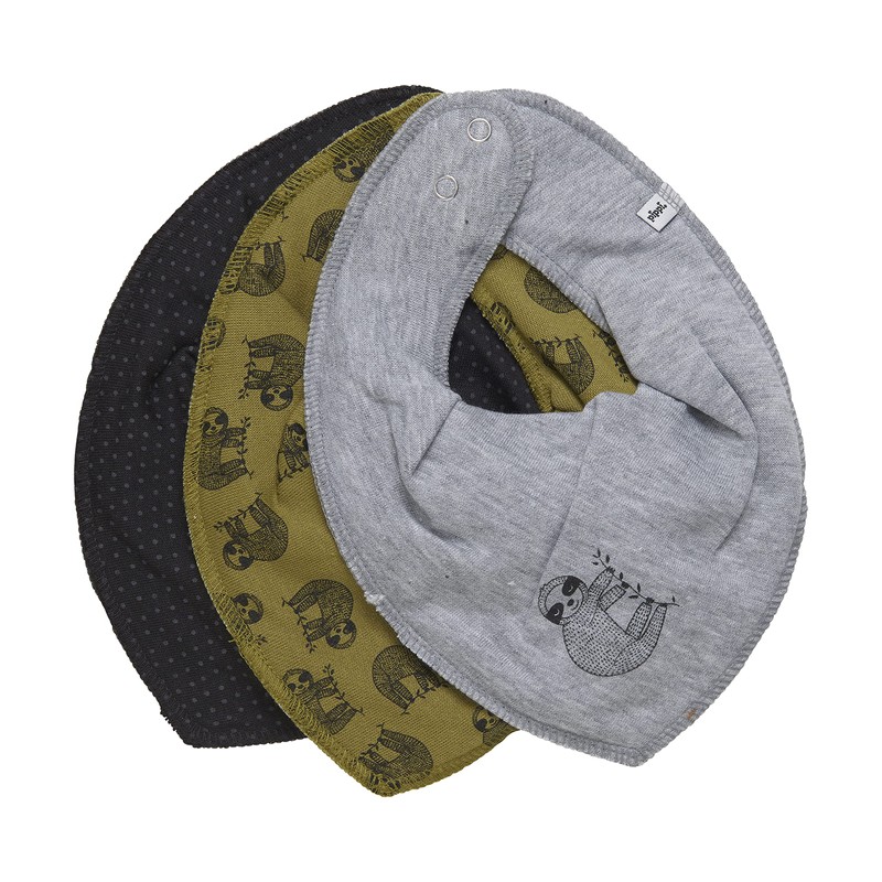 PIPPI Unisex Baby Bibs Triangle Bibs, Green Moss, One Size, Pack of 3, Green moss