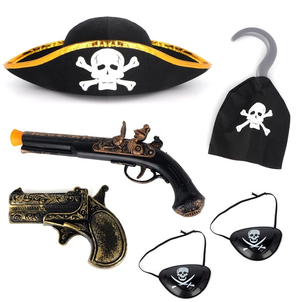 Pirate Cosplay Accessory Kit Including Toy Flintlocks Crossbone Hat Eye Patches Hook