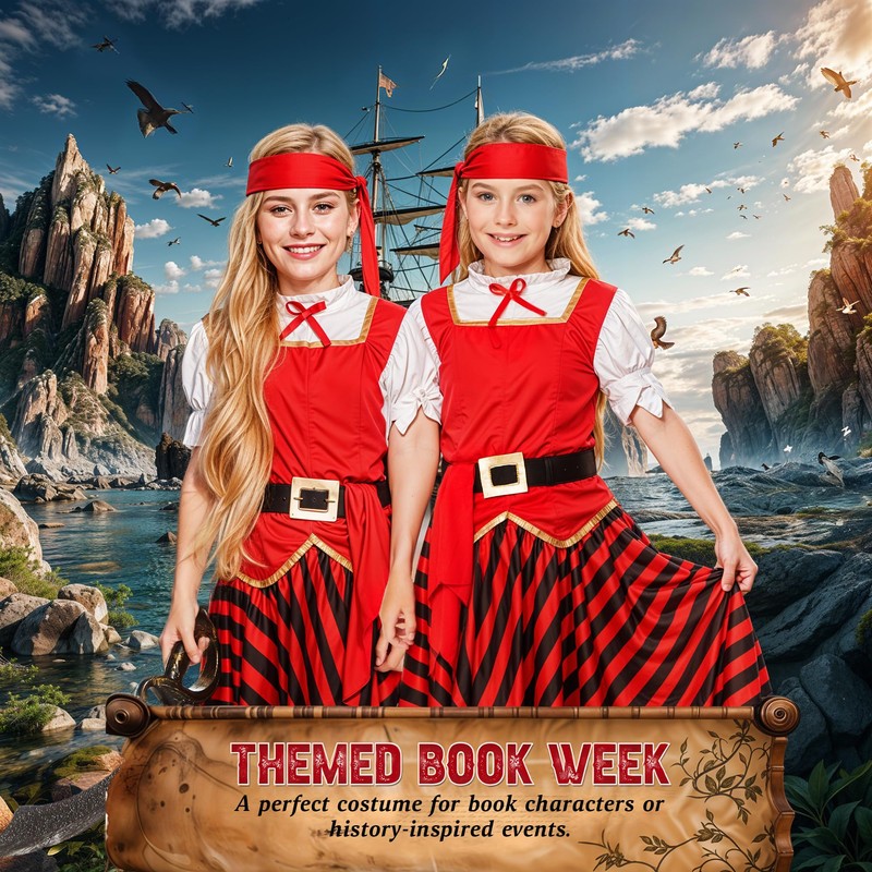 - Perfect Pirate Costume for Kids – Includes a Shirt, skirt, and headband as featured. Other accessories are not included. Ideal for dress-up play, Halloween costumes, and themed parties.