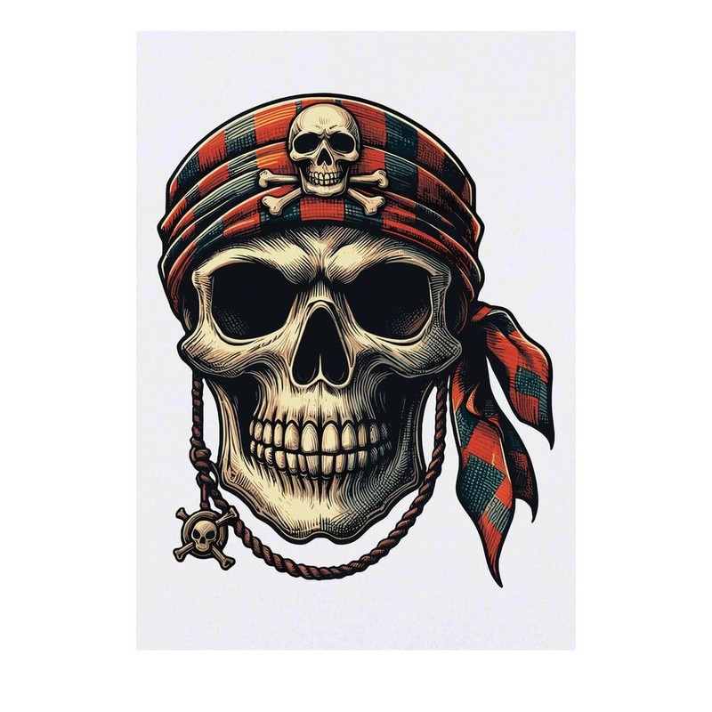 'Pirate Skull With Bandana' Temporary Tattoo - Water Resistant, Skin-Safe, Non-Toxic Transfer (TO00077649)