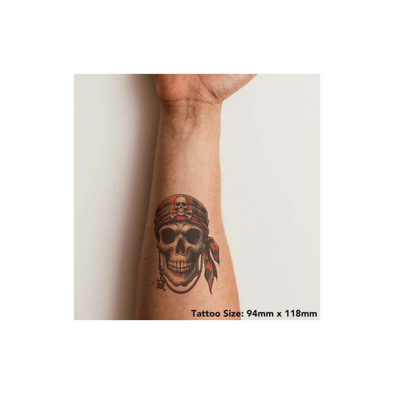 'Pirate Skull With Bandana' Temporary Tattoo - Water Resistant, Skin-Safe, Non-Toxic Transfer (TO00077649)