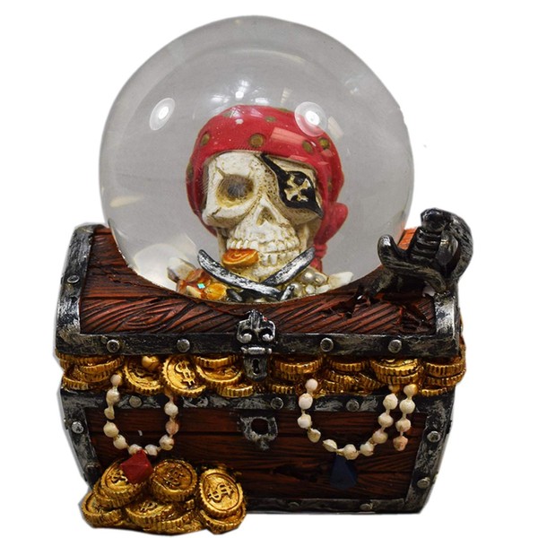 Pirate Treasure Chest Glitter Snow Globe, 4 Inches