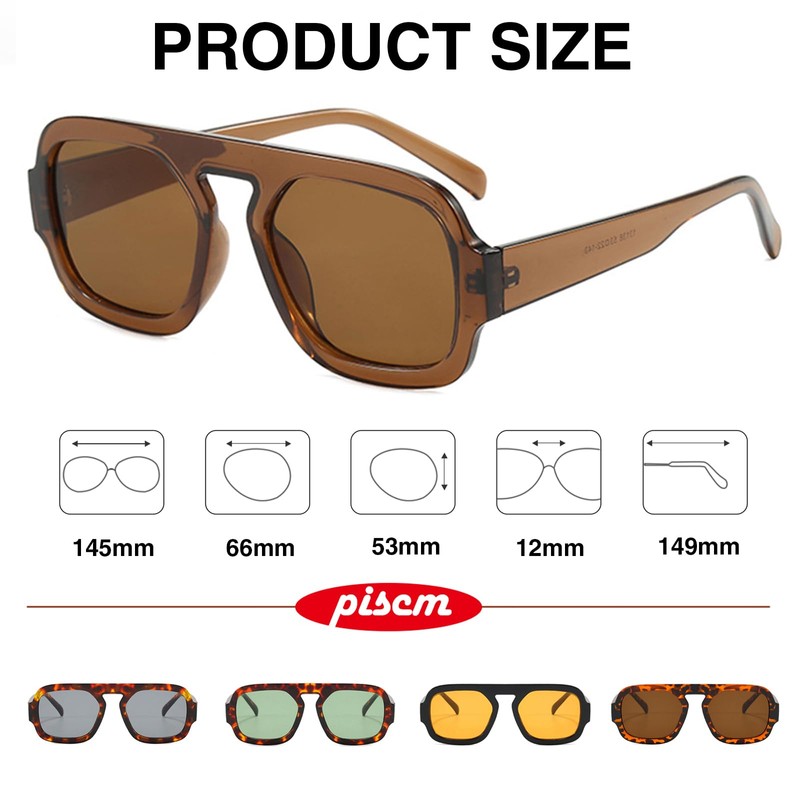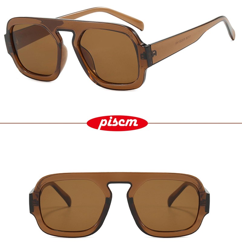 piscm Retro Square Aviator Sunglasses for Women Trendy Thick Frame Sunglasses Flat Top Shades (Brown)