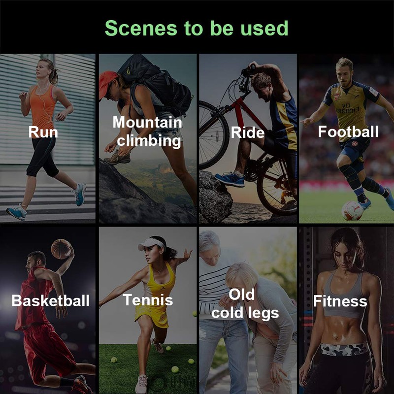 - Aplicaciones: está diseñado principalmente para deportes de contacto: baloncesto, fútbol, béisbol, voleibol, lacrosse, paintball, fútbol, ciclismo, tenis, crossfit, voleibol, footing, levantamiento de potencia, skateboard, triatlón, caminar, senderismo, lucha libre, esquí, golf, fútbol, zumba, escalada, gimnasia, levantamiento de pesas, yoga, sentadillas, béisbol, culturismo, artes marciales, corredores, datiles. ance, Entrenamientos de Gimnasio, Ejercicio y otros deportes de fitness.
