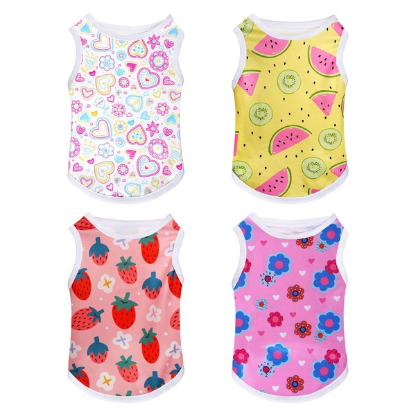 Pistha 4 Pcs Dog Shirts Lovely Printed Pet Clothes Sleeveless Soft Kitten Shirts for Small Medium Dogs Cats Holiday,L