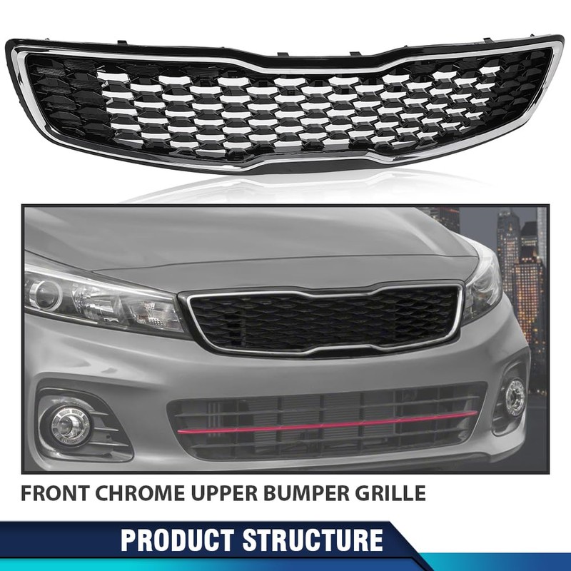 PIT66 Front Upper Bumper Grille Grill Chrome Compatible With Kia Forte5 Hatchback EX LX 2017 2018 17 18 86350-A7810, 86350A7810, 86350A7830, 86350-A7830