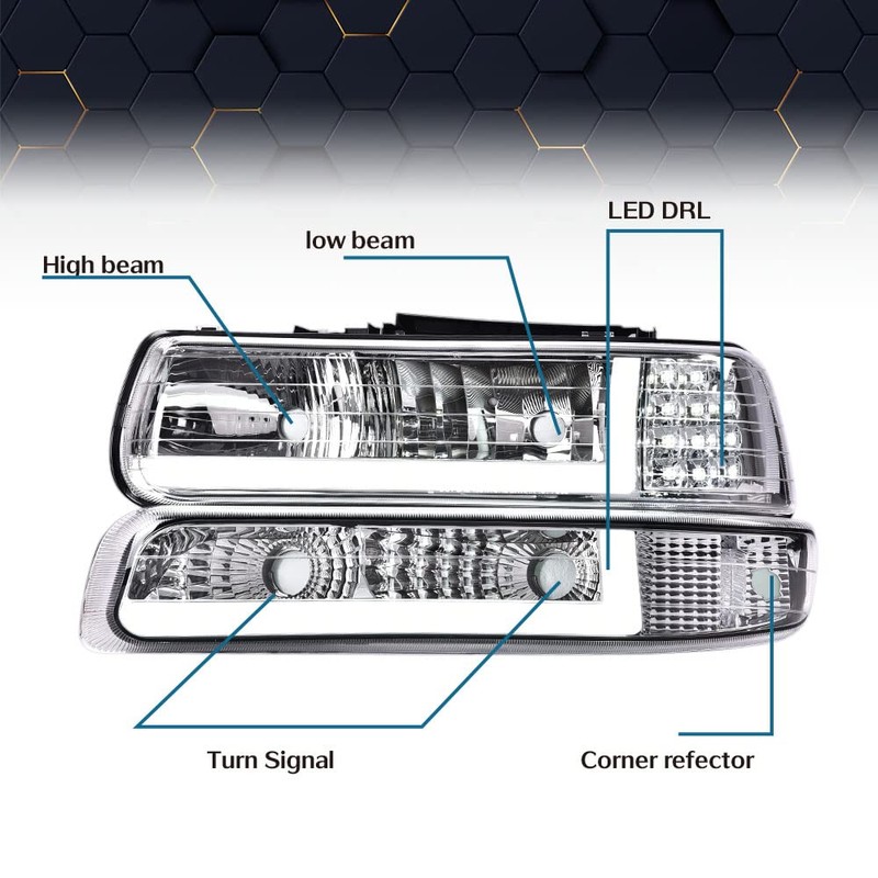 - Brighter & Cooler LED - The upgraded LED headlight assembly adds LED DRL and uses special fine chrome plating to increase brightness and ultra-wide angle, making the vehicle brighter and cooler