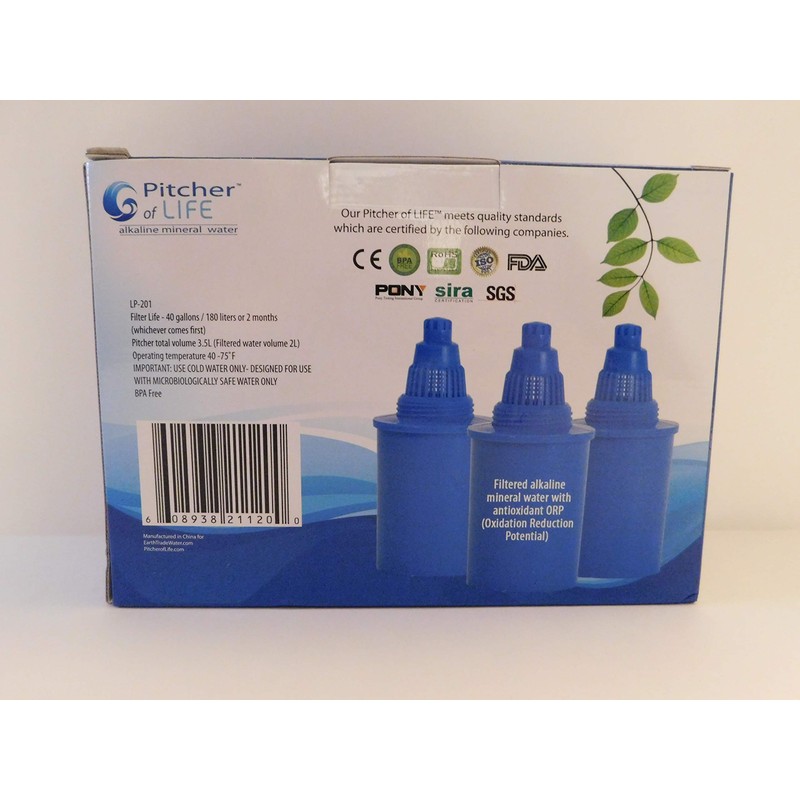 Pitcher of Life Alkaline Water Pitcher Replacement Filters - 3 Pack