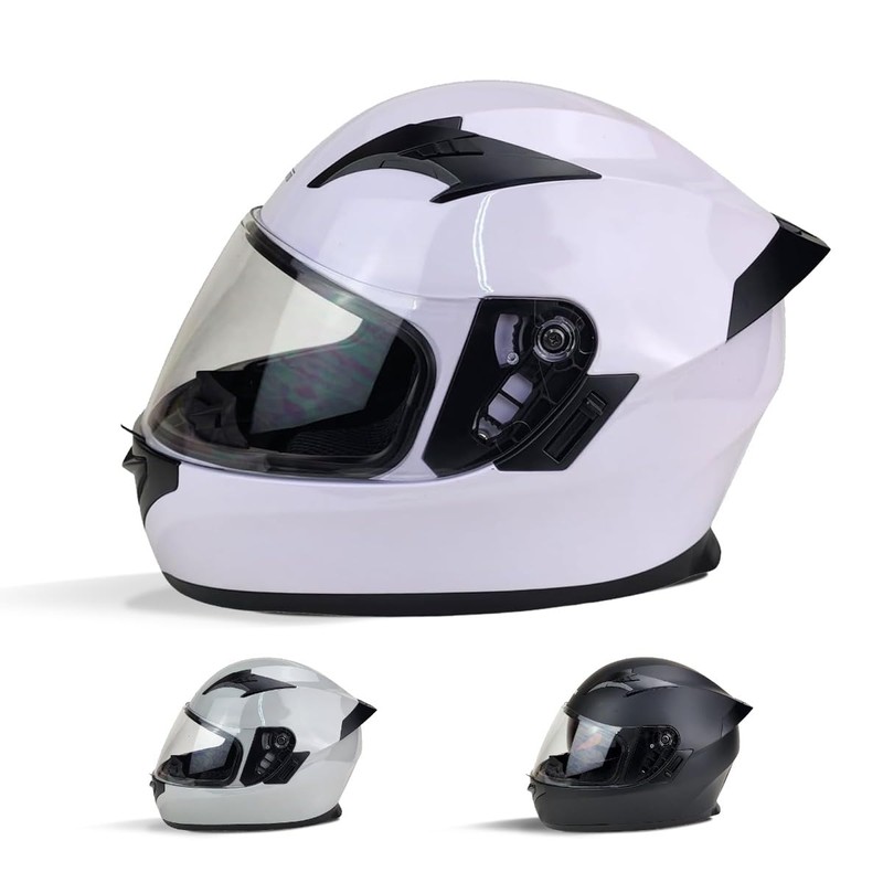 PITMOTO PM-888, Full Face Dual Visor DOT Approved Motorcycle Helmet-White-Large