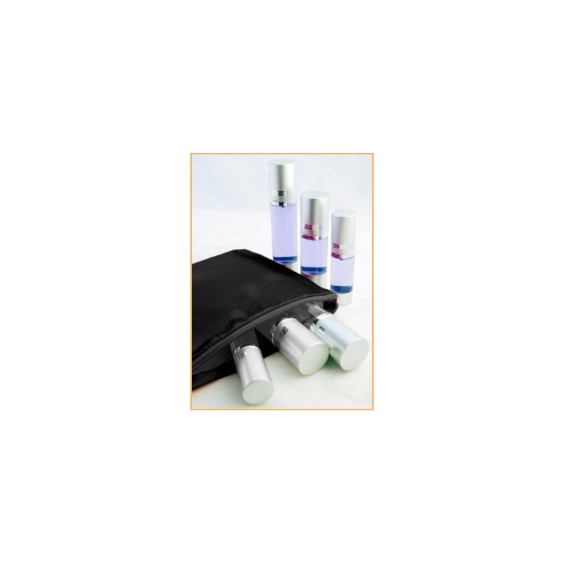 - Contains Five 1.0 oz. clear, refillable, airless, travel bottles.