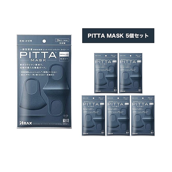 Pitta Mask Face Mask Regular Navy 5 Packs x 3 Masks
