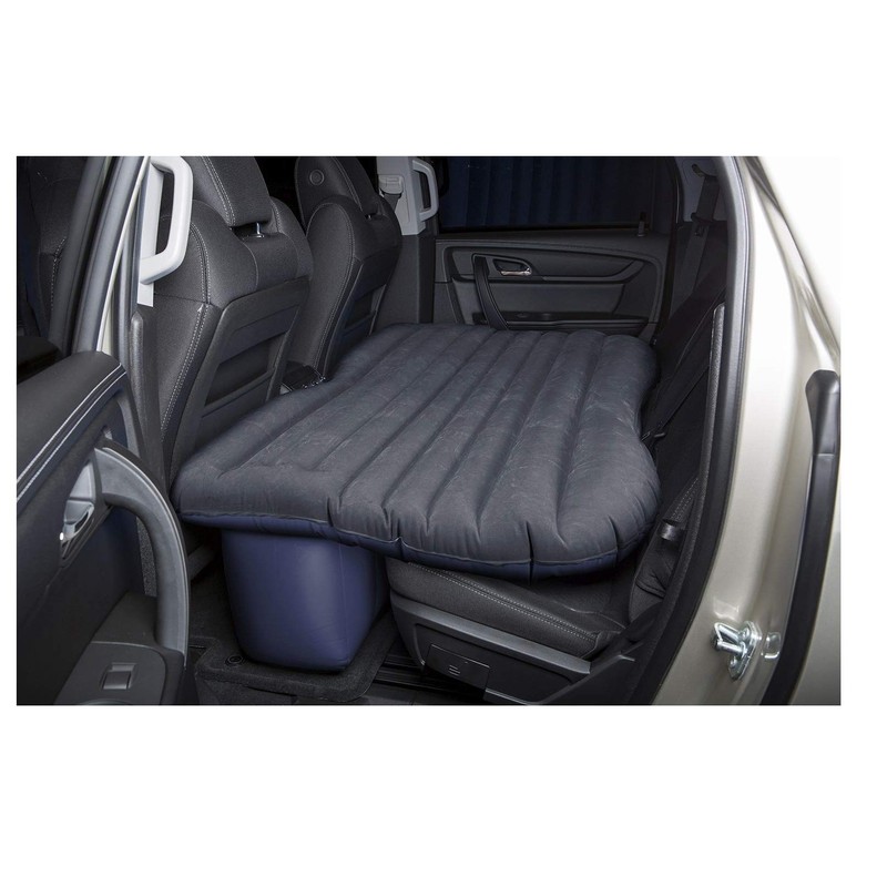 The inflatable rear seat air mattress is perfect for mid size Cars, mid-size trucks, Jeeps and SUV's. The air mattress is made of soft, heavy duty PVC construction with top flocking comfort and includes a DC portable air pump for your convenience. No need to rent an expensive hotel room anymore. Take car rides to the next level of comfort with this Inflatable Travel Mattress. The mattress easily fits into the back seat of most cars. Inflates in under 2 minutes with the included DC portable air pump with 6 foot cord. 90 day manufacturer’s limited warranty. Includes mattress, pillow, portable DC pump, carry bag, and patch kit.