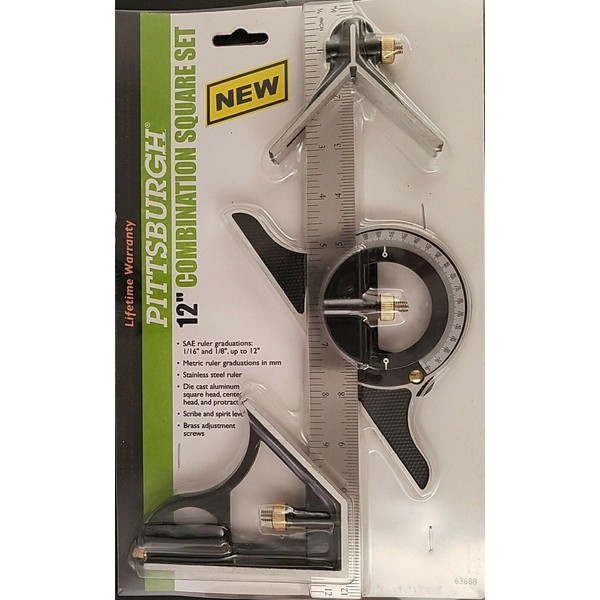 Pittsburgh 12” Layout Multi-Angle Square Combination Protractor Measuring Set