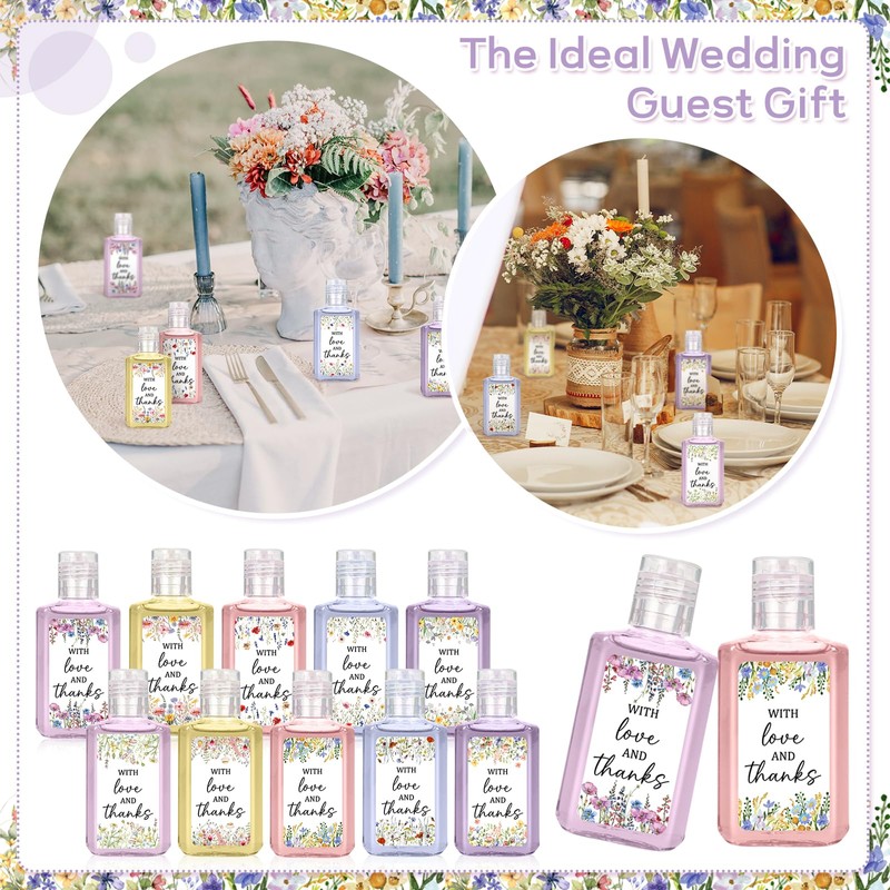 Piuaeue 50Pcs Wild Flower Mini Hand Sanitizer Bulk, Thank You Gift Wedding Favors Small Hand Sanitizer for Guest 1fl oz Travel Size Hand Soap for Wedding Gift Supplies