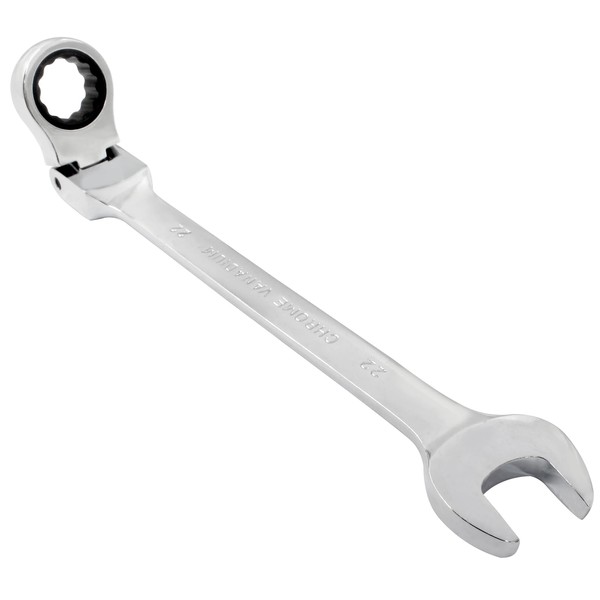 Piutouyar 22mm Flex-Head Ratcheting Wrench, Professional Metric Ratchet Wrench Combination Wrench Box Ended Spanner Tool for Projects Repair(5° Movement and 72 Teeth 12 Point, CR-V)