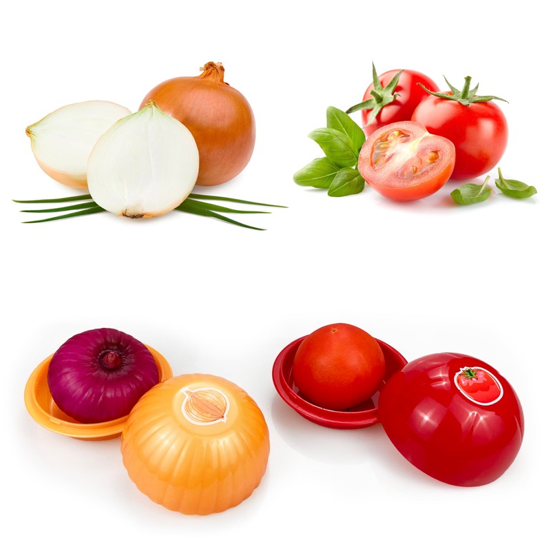 - GOOD FRESHNESS: Onion and Tomato shaped storage are designed with lids, which can prevent the entry of air and moisture, thus prolonging the freshness of vegetables and fruits and keeping their freshness, and also well blocking the emission of odors