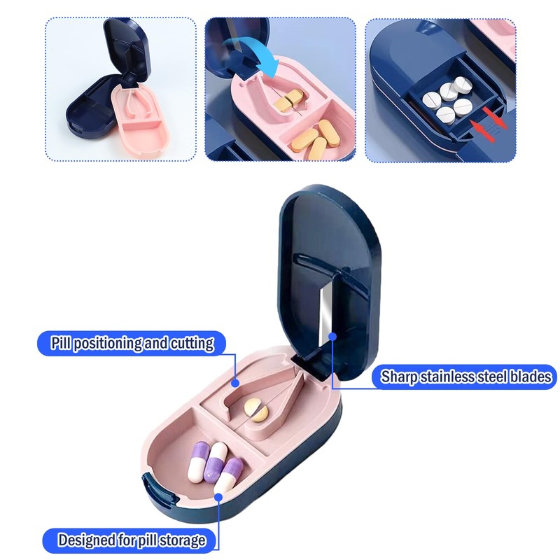 - 【2-in-1-Pillenschneider】Der Pillenschneider verfügt über 1 Fach, in dem mehrere Pillen aufbewahrt werden können. Es ist praktisch, die gehackten Pillen für den späteren Gebrauch aufzubewahren. Das Silikonpad des Tablettenschneiders ist abnehmbar und leicht zu reinigen