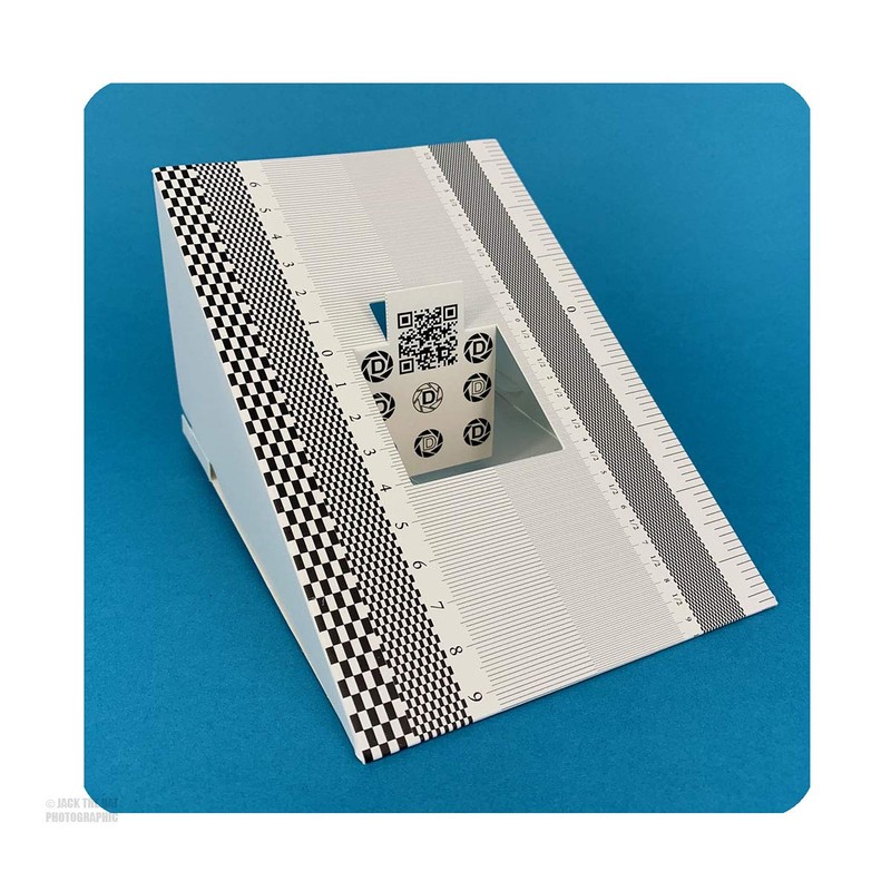 The Pixel Peeper autofocus calibration target is made from stiff cardboard that quickly pops up into shape to form a rigid target that is angled perfectly. Simply aim your camera's autofocus point at the zero section of the chart, take a photo and then review the image to see if your lens focussed sharply on the same area. Many modern DSLR cameras have a menu section that allows you to adjust the precise focus position of individual lenses. Using this AF target will allow you to precisely calibrate the focus of all your lenses. This eliminates frustrating back focus and front focus problems often associated with wide aperture lenses. The Pixel Peeper AF Target is printed in exceptionally fine detail to allow the user to study the image quality and rendition of today's high resolution cameras and lenses.