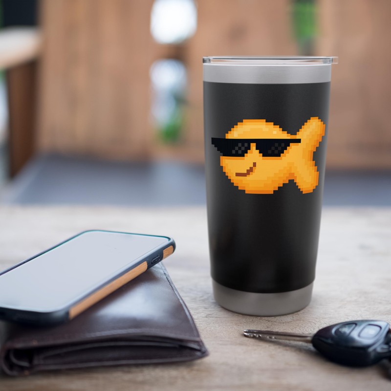 Pixelated Goldfish Cracker With Thug Pixel Sunglasses Stainless Steel Insulated Tumbler
