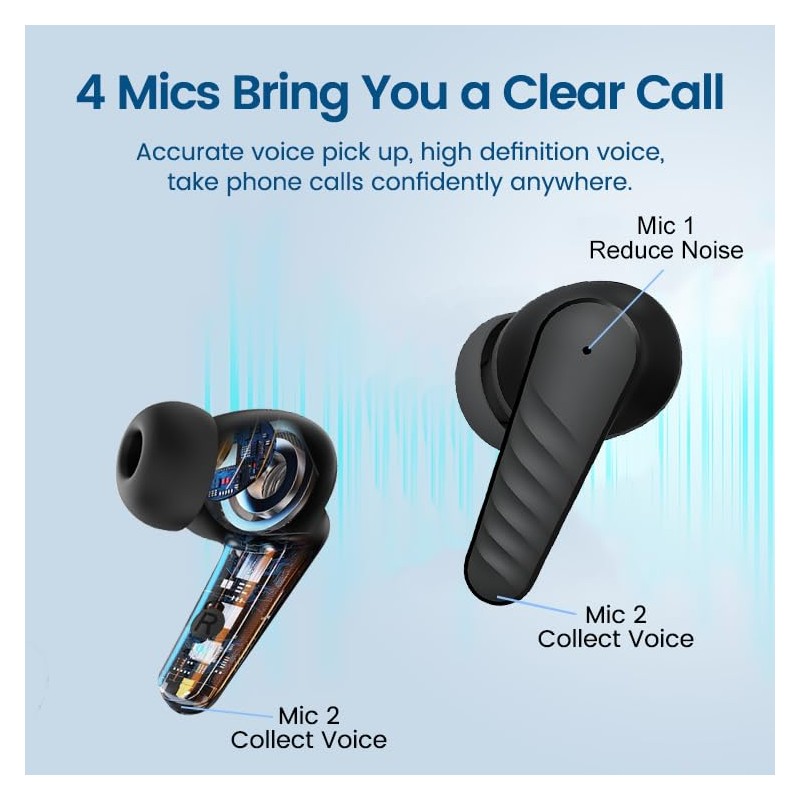 - [High-fidelity Audio and ENC Noise Reduction]: Bluetooth earbuds 10mm large size speaker driver delivers powerful bass, mellow midrange, and clear treble, reproducing your music vividly. Built-in high quality MIC, noise cancelling earbuds adopt ENC tech that effectively separates your voice from the ambient sound, and makes communication clear.