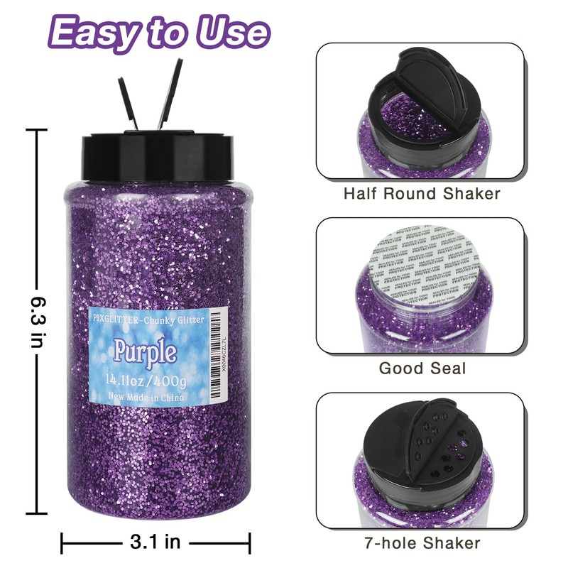 PIXGLITTER Purple Chunky Glitter, 14.11oz/400g Craft Glitter Powder for Epoxy Tumblers, Hair Face Body Eye Nail Art Festival, DIY Party Decorations