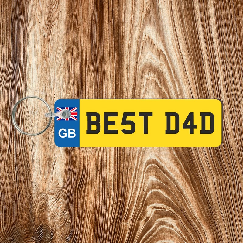 - Personalised Just for You: Choose from standard designs like BEST DAD, BE5T D4D, D4DDY, DADDY, GRANDAD, DAD, or personalise with a name or word of your choice. We also offer a GB number plate keyring, a UK number plate keyring, and a plain yellow option.