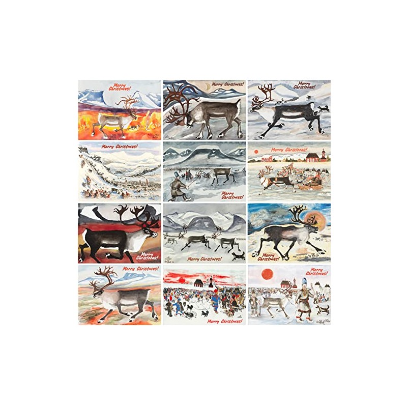 PIXILUV CHRISTMAS Greetings Cards 12 Notecards ~ Reindeer in Winter Scenes ~ Vintage Postcards Reprint