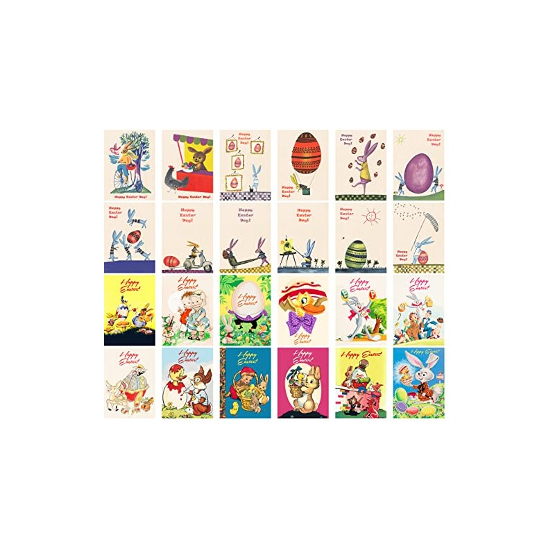 PIXILUV Vintage Postcards (24 pcs 4"x6" each) EASTER Bunny Eggs and Chicks Vintage Notecards Retro Easter Greeting Card Reprint